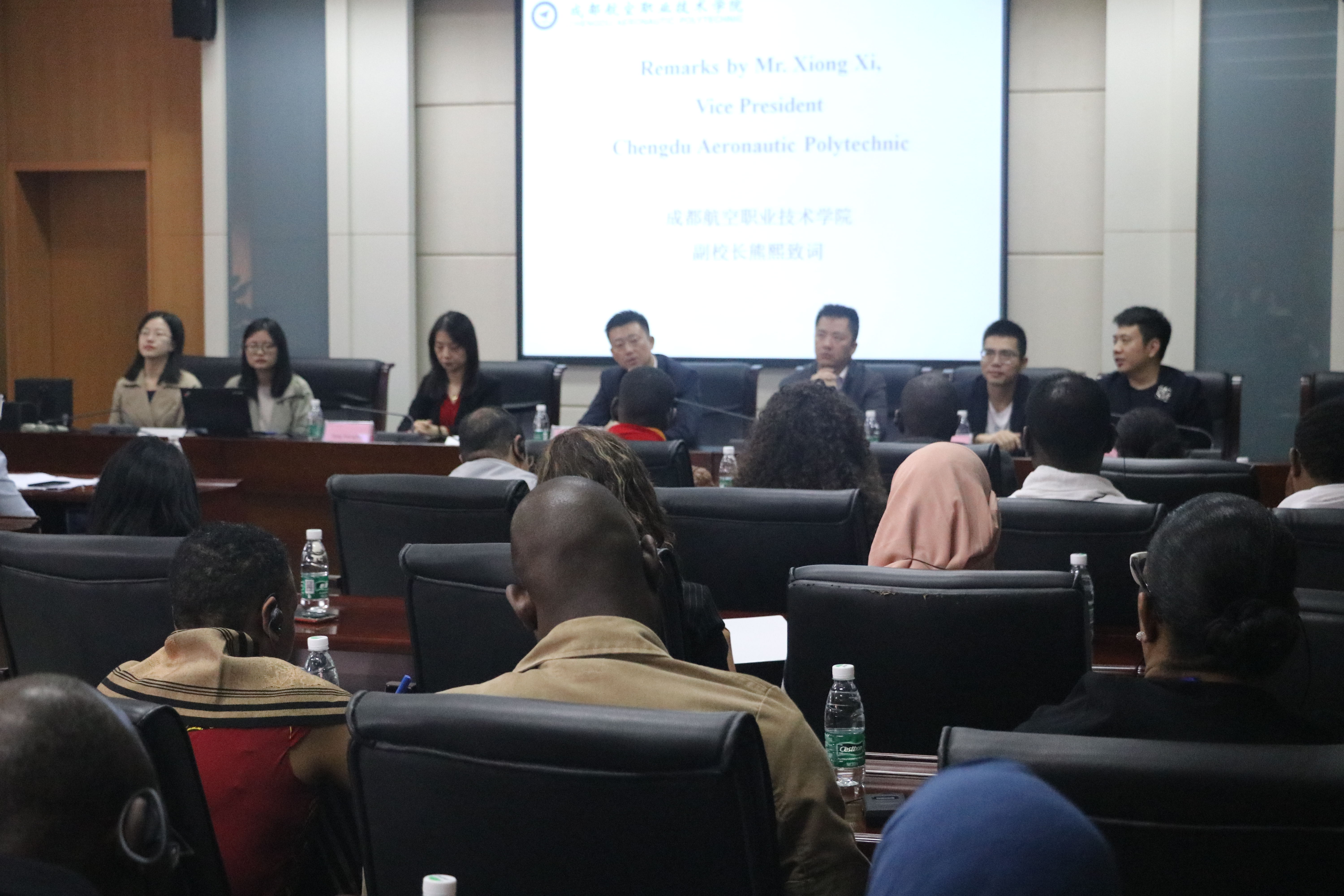 2019年10月22日上午,成都航空职业技术学院迎来阿尔及利亚、布基纳法索、布隆迪、刚果布、吉布提、几内亚、科特迪瓦等16个亚非拉国家的近60名外宾到校培训。此次培训项目是学校自2015年以来第五次成功承办由国家商务部主办的“援外”培训项目,受训学员包括多国政府官员及高校管理人员。培训主题涉及“2019年非洲法语国家职业教育宏观政策”和“ 2019年发展中国家职业教育宏观政策”。学员们在学校开展为期一周的理论学习、交流研讨、企业实地考察、文化参访等研修活动。