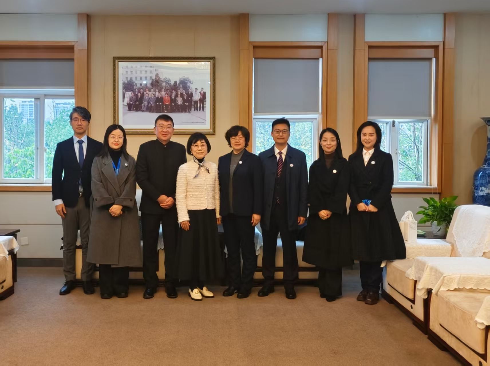 跨越山海,携手十载;深耕育人,共启新程。2025年12月6日, 以下简称“ ”与韩国济州观光大学以下简称“济州观光大学”围绕空中乘务中外合作办学项目开展十周年系列交流活动,以“共叙友谊、共谋发展”为核心,凝聚合作共识,擘画未来蓝图。济州观光大学校长金性圭率代表团专程到访, 党委书记陈小红、校长侯孟书共同会见代表团,代表学校对韩方一行的到来致以热烈欢迎,双方就深化国际教育合作、提升空乘人才培养质量等议题展开深度对话。