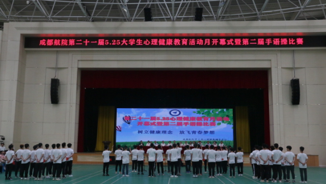 为进一步推进学校心理育人工作,5月11日下午,由心理健康辅导中心主办、校学生会权益部承办的成都航院第二十一届“5.25”心理健康教育活动月开幕式暨第二届手语操比赛在文体馆举行。校党委副书记兼副校长陈玉华出席活动,学工部、校团委、心理健康辅导中心相关领导及教师,各学院负责心理健康教育工作的辅导员老师以及各学院学生代表、手语操参赛人员等共500余人参加活动。