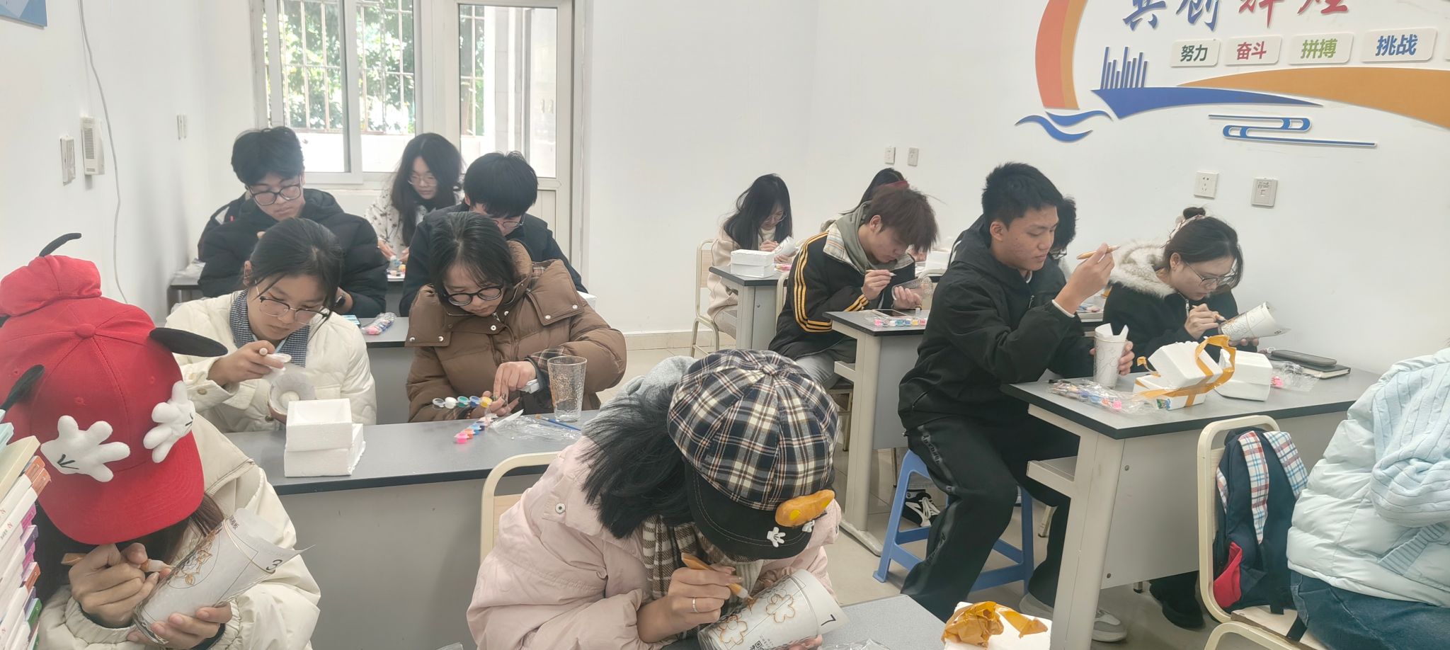 理论培训结束后,参与培训的全体成员开展了“手绘心语”玻璃杯绘画主题活动。活动现场,大家纷纷拿起画笔,在玻璃杯上尽情挥洒创意与情感。有的同学画下了温暖的阳光与绽放的花朵,寓意着积极向上的心态;有的同学绘制了宁静的星空与闪烁的星星,表达对内心宁静的追求;还有的同学画上了可爱的卡通形象,传递出轻松愉悦的氛围。在绘画过程中,大家相互交流、分享灵感,欢声笑语回荡在整个活动现场,不仅让同学们在紧张的学习生活中得到了放松,还进一步增进了彼此之间的了解与友谊,为今后更好地开展心理健康工作营造了良好的氛围。