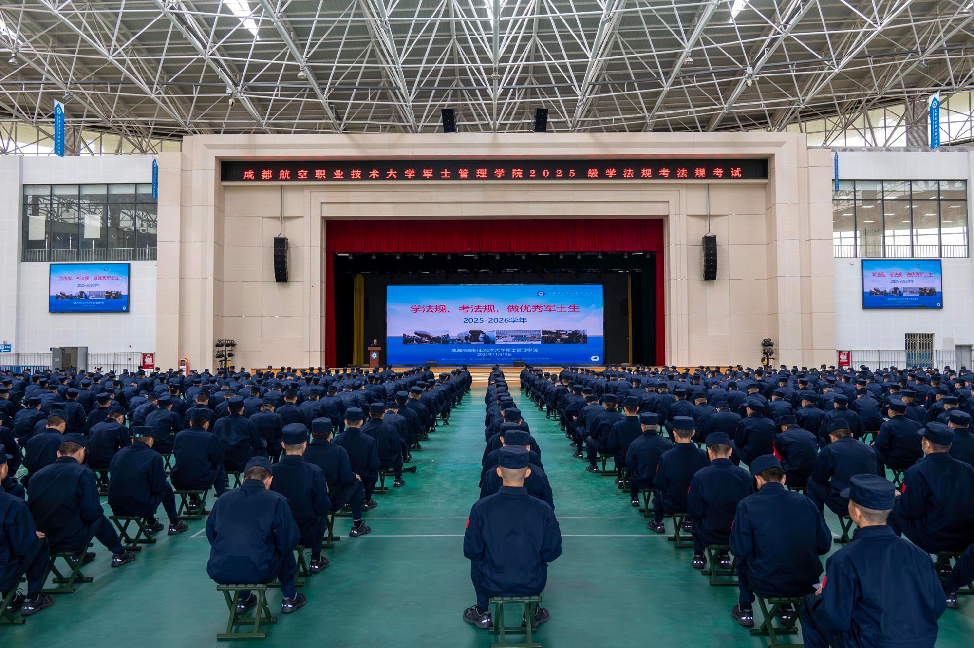 为进一步强化2025级定向培养军士纪律意识与法治素养,11月18日,军士管理学院于学校文体馆组织开展了“学法规、考法规,做优秀定向培养军士”活动。本次活动以线上闭卷考试的形式进行,由宋勇军担任主考。