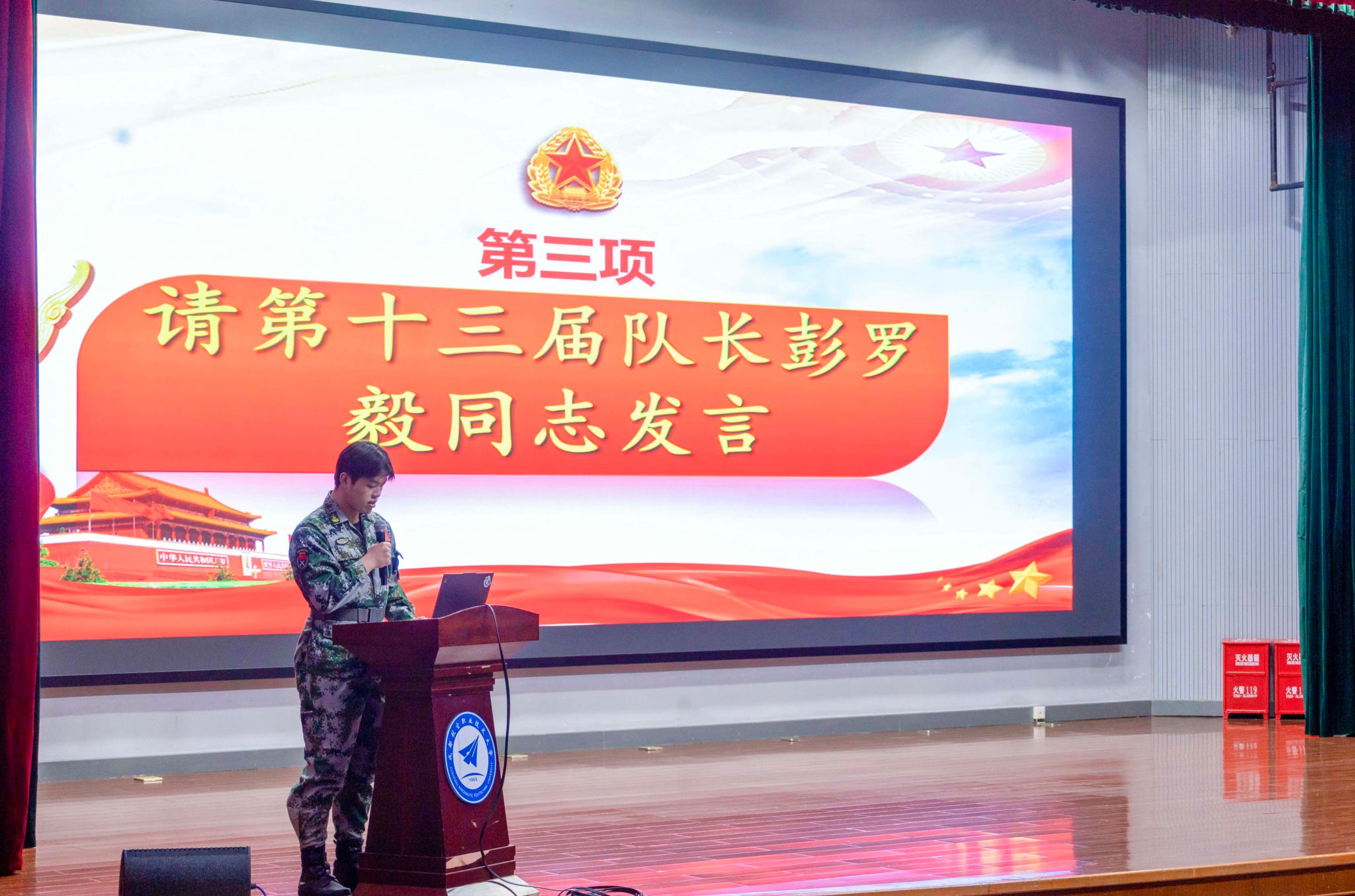 第十三届国旗护卫队队长彭罗毅发言