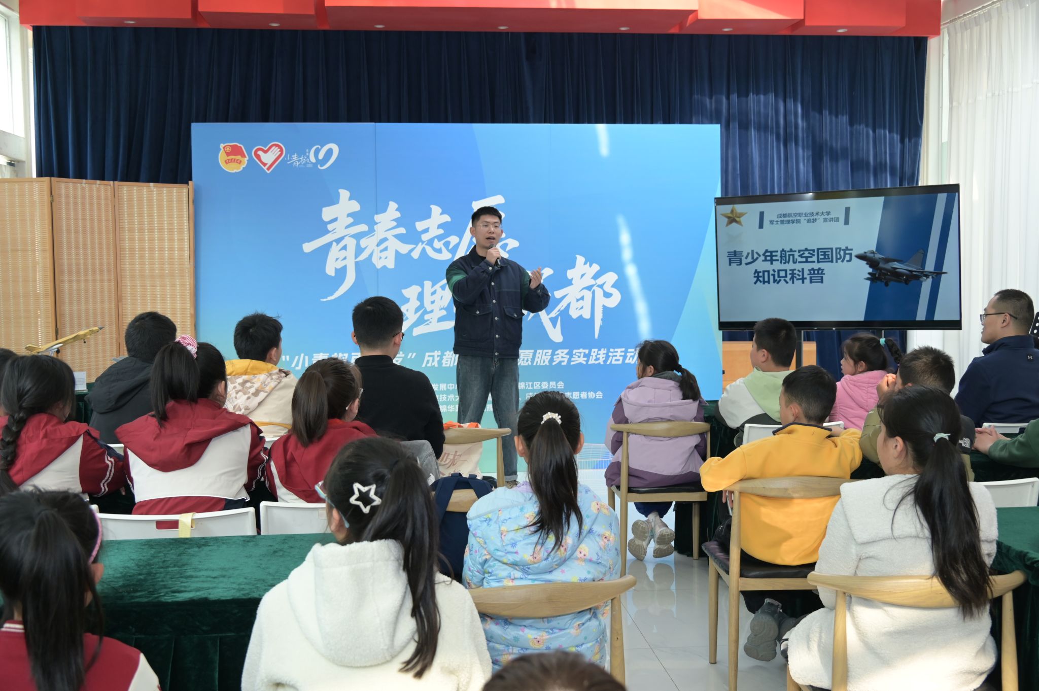 11月30日,军士管理学院“追梦”宣讲团受邀参加由成都市青年发展中心、共青团成都市锦江区委员会主办的“青春志愿 理响成都”成都青年志愿服务实践活动,走进锦江区晨辉社区开展国防教育与航空科技培训活动,厚植群众爱国情怀,普及航空科技知识,对青少年开展国防教育。