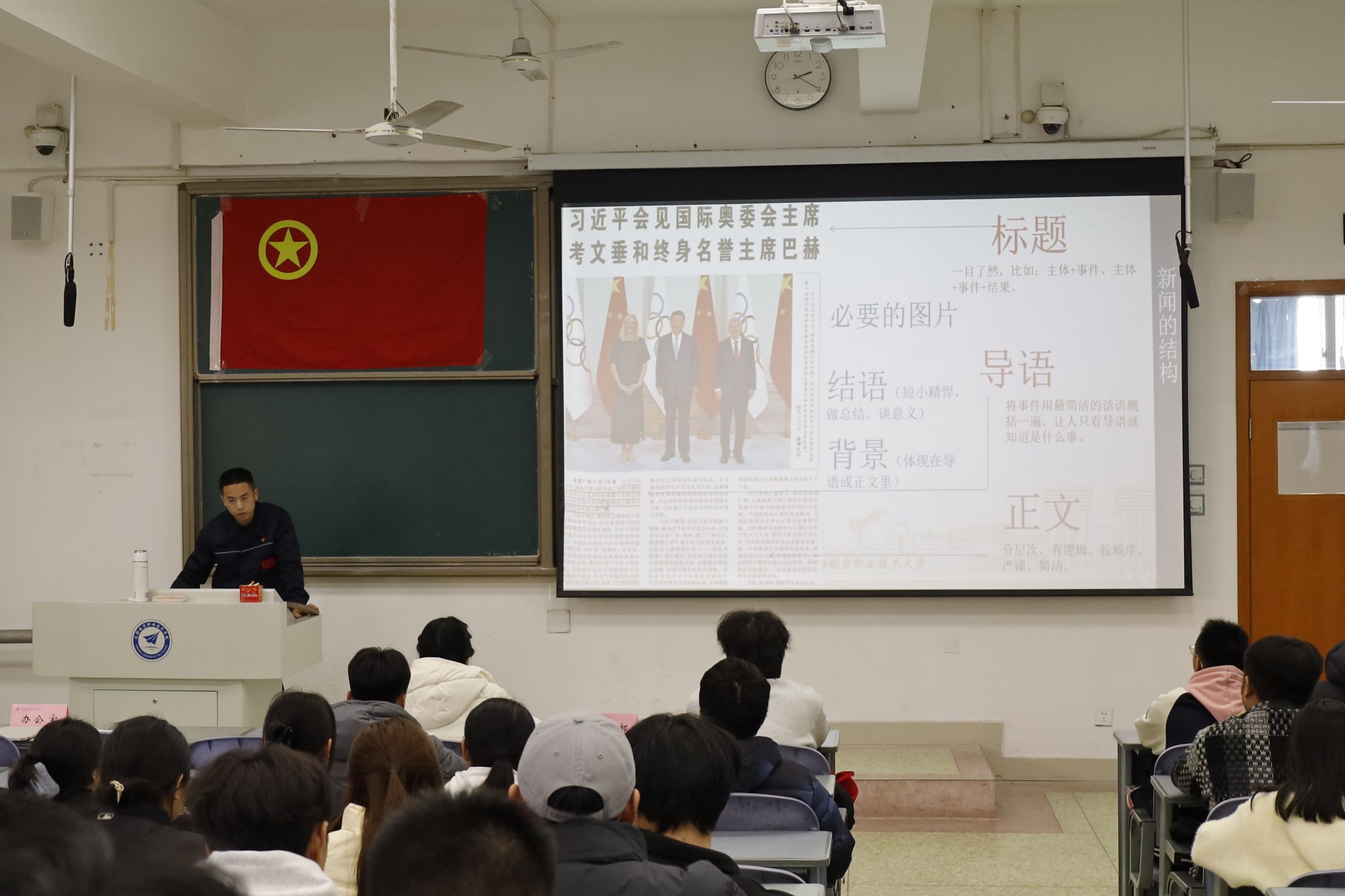 陈杰龙从"为何需要精准表达"这一问题切入,强调了在信息时代掌握高效传播能力的重要性。他结合自身实践经验,系统讲解了新闻写作与推文创作的核心要点,通过生动案例将抽象的创作理论具象化,使同学们更容易理解和掌握。在新闻写作部分,陈杰龙详细解析了新闻稿件的"6个何"核心要素(何人、何时、何地、何事、何故、如何)及其运用规范。他建议同学们通过研读优秀范文、勤加练习的方式,快速提升写作水平,夯实基本功。在推文创作环节,陈杰龙从受众角度出发,分享了打造优质推文的实用技巧,包括标题设计、内容策划、版面编排等多个方面。他现场演示了常用排版工具的操作方法,强调"形式服务于内容"的基本原则,提供了从创意构思到成品发布的全流程指导。