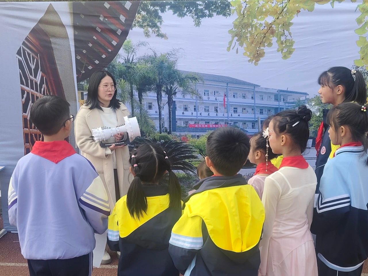 教师袁子了为石板滩小学孩子们讲解航空知识