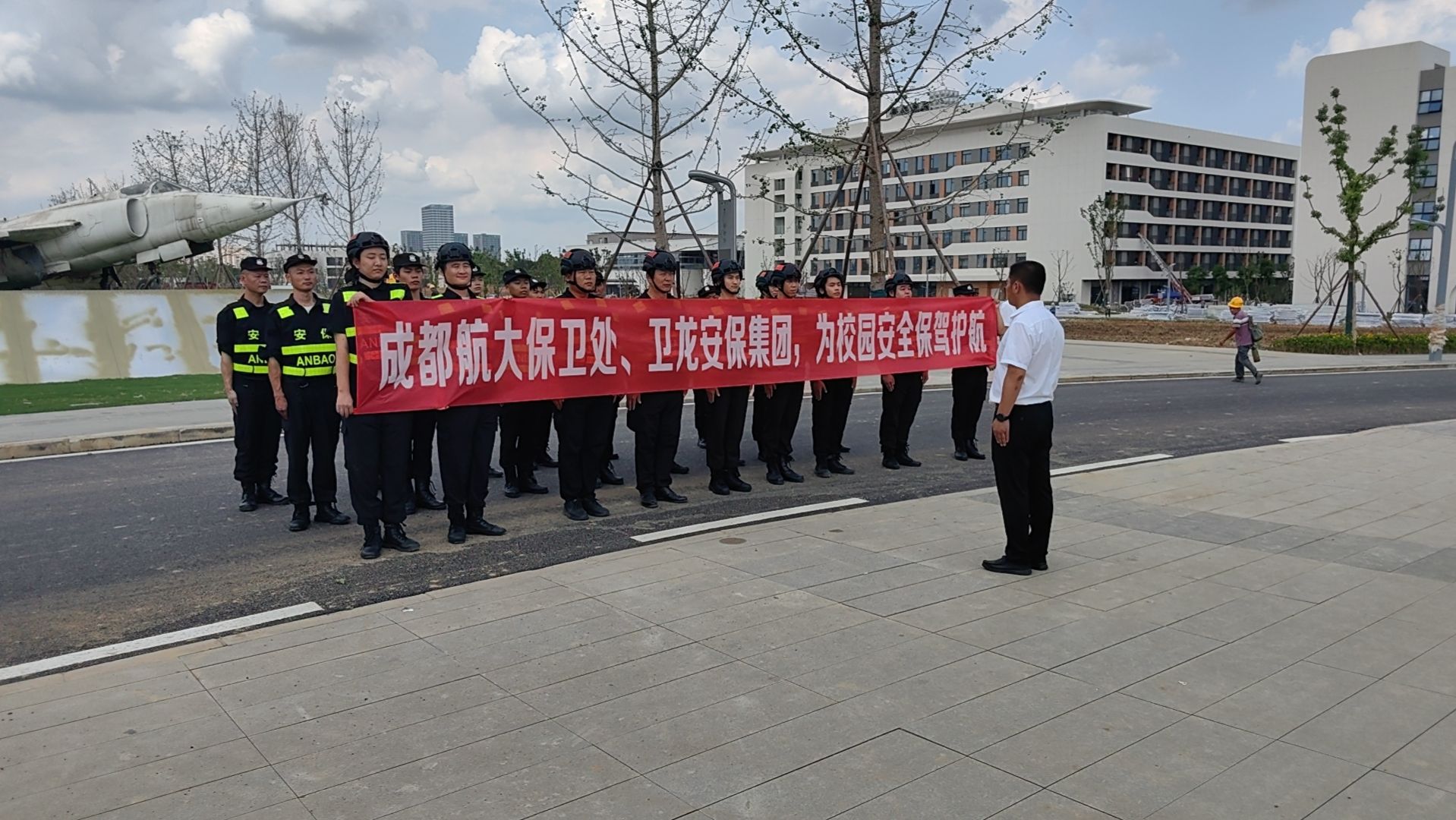 在新都校区举行安保服务公司进驻仪式,卫龙安保集团正式进驻并承接新校区校园安保项目。原成都航院副院长熊熙、学校保卫处及卫龙安保集团负责人出席仪式。