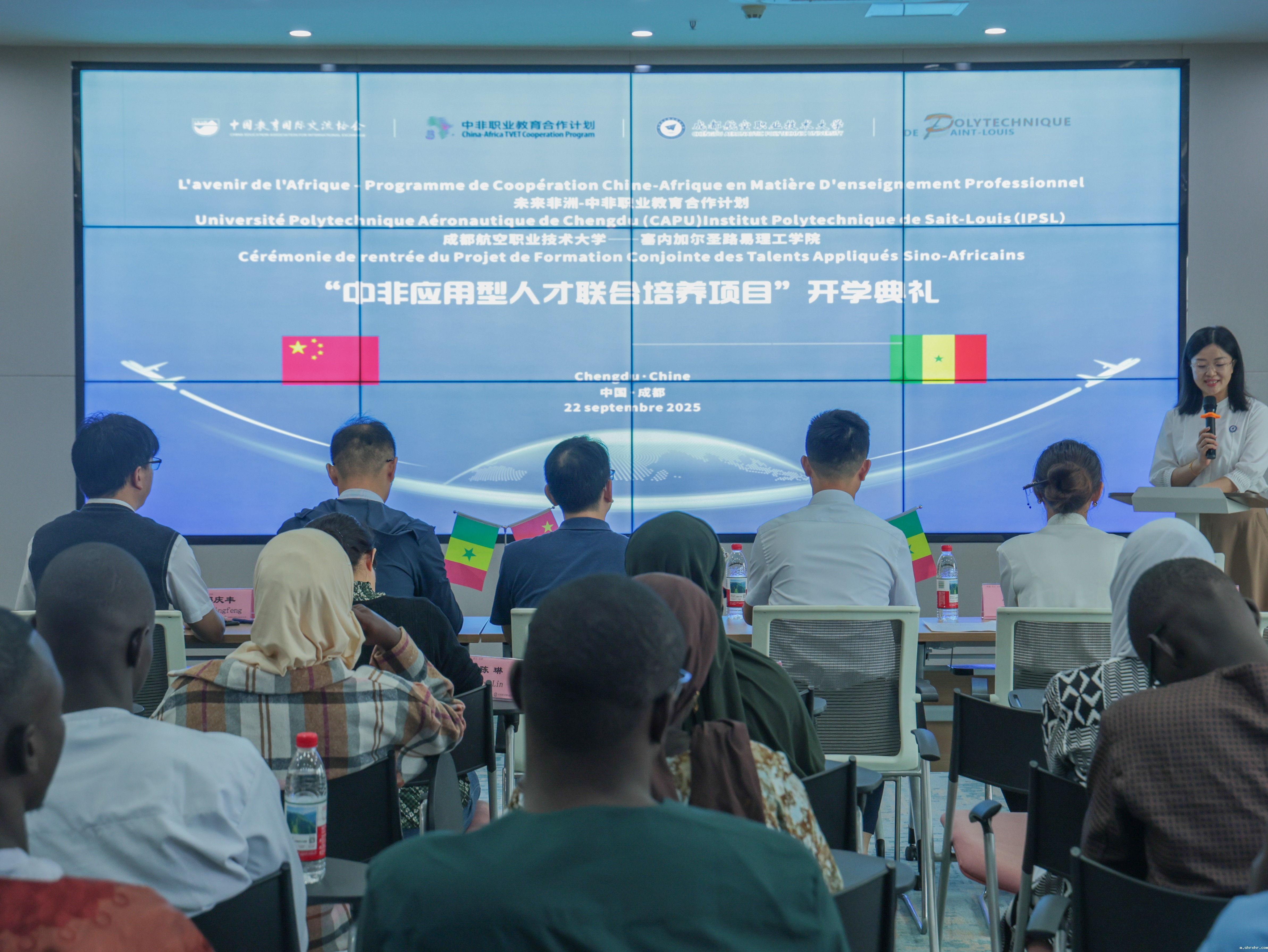 2025年9月22日上午,优米集团“未来非洲—中非应用型人才联合培养项目”2025级新生开学典礼在学校博学楼804报告厅举行。原成都航空职业技术学院副院长熊熙出席典礼,教务处、机器人学院、国际教育学院等单位相关工作负责人与教师代表到场共同见证。开学典礼由国际合作与交流处外事工作负责人余姝霖主持。